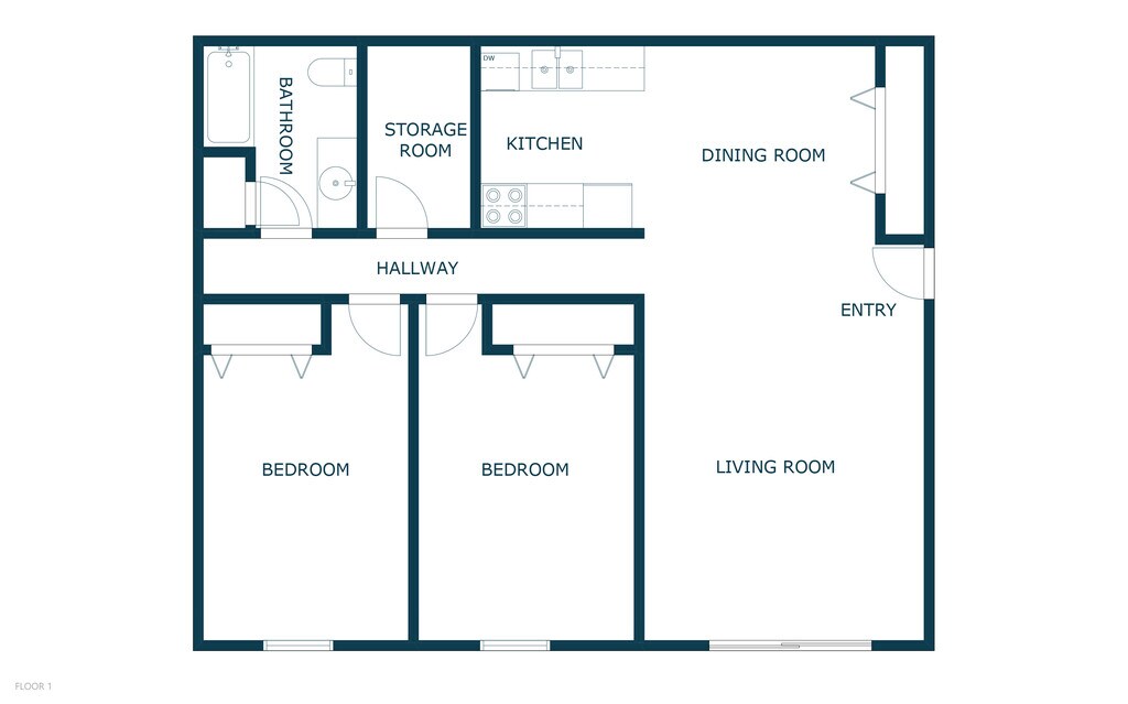 2 Beds, 1 Bath, 1100 sq ftLargest 2 BedroomThis is the largest 2 Bedroom at this PropertyModel Gallery