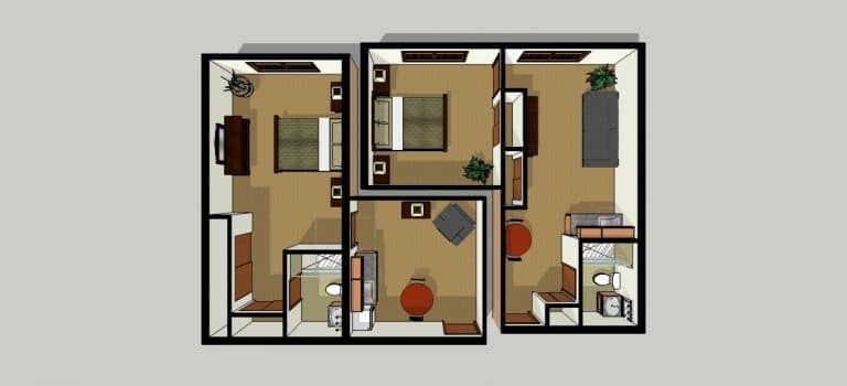 2 Beds, 2 Baths, 936 sq ftModel Gallery