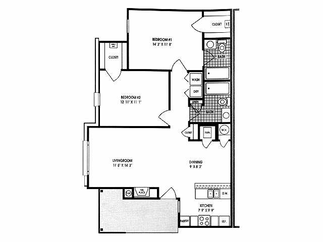 1 Bed x 1 Bath - Floorplan 3 2 Bedrooms