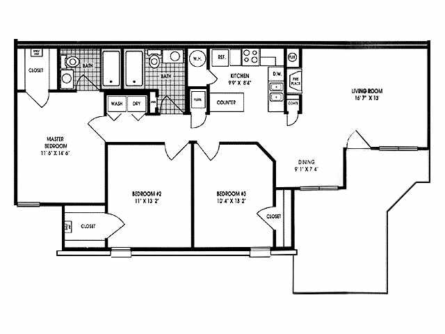 2 Bed x 2 Bath - Floorplan 3 3 Bedrooms