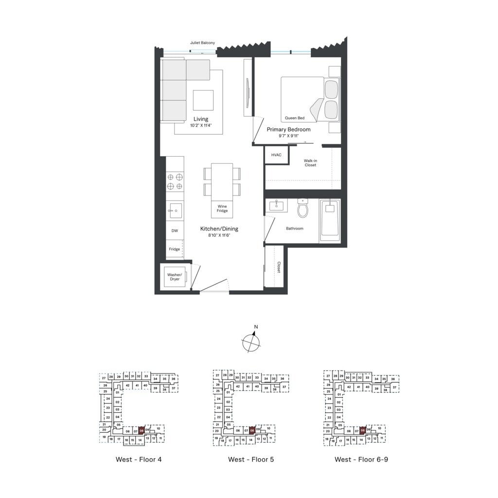 A10 - Floorplan 1 Apartment Unit: W0412Apartment Model: A10$2,4521 Bedroom, 1 Bath, 527 sq ftAvailable NowApartment Unit: W0812Apartment Model: A10$2,4621 Bedroom, 1 Bath, 527 sq ftAvailable February 20, 2026Floorplan A09