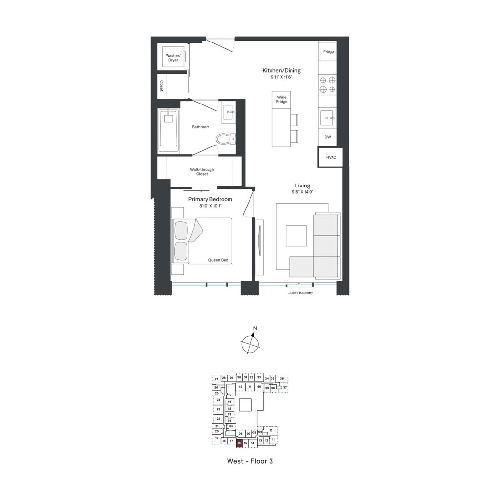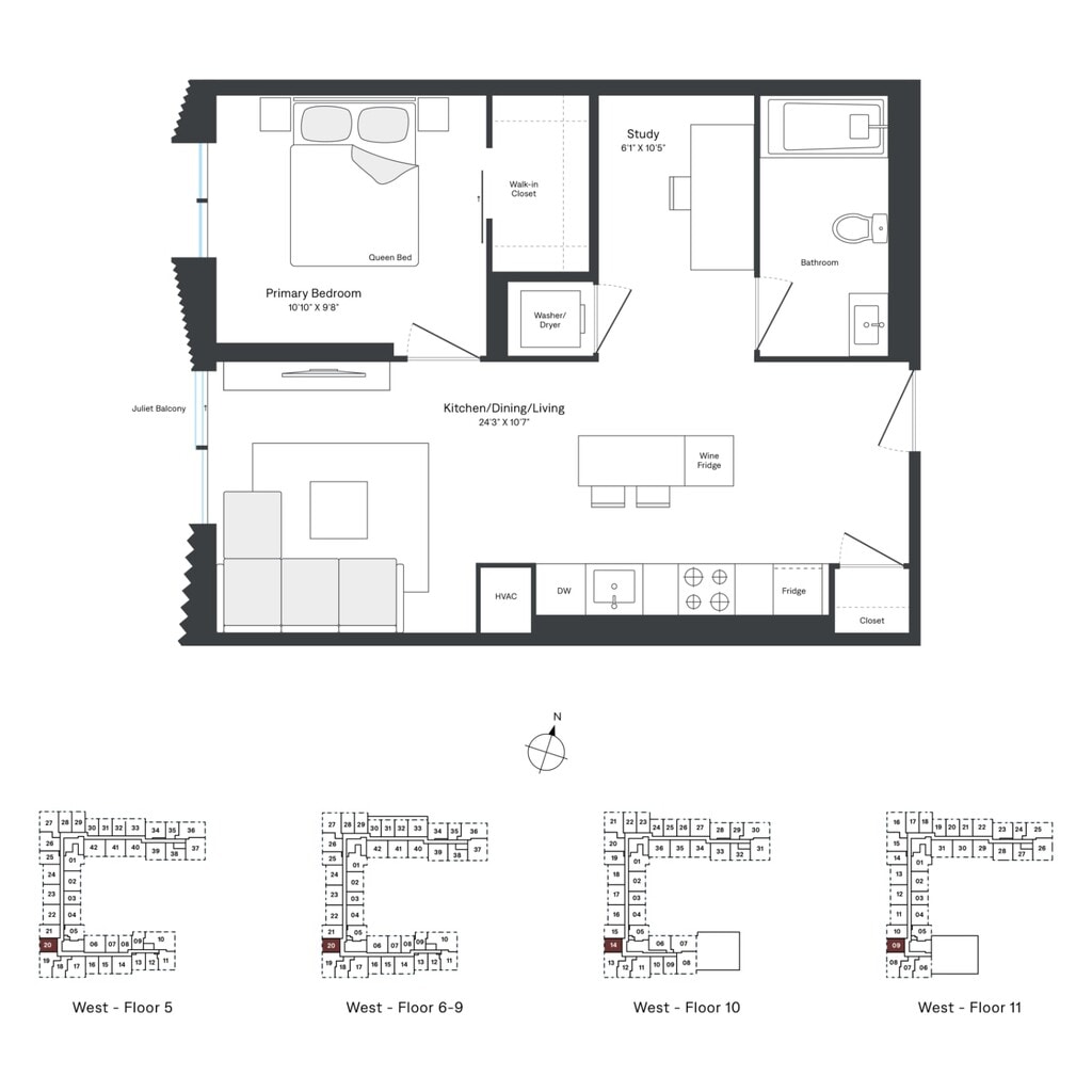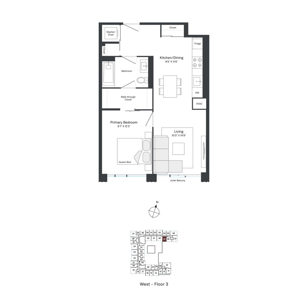 A06 - Floorplan 1 Apartment Unit: W0308Apartment Model: A06$2,4071 Bedroom, 1 Bath, 512 sq ftAvailable NowFloorplan A10