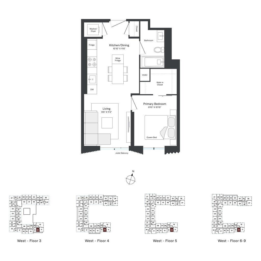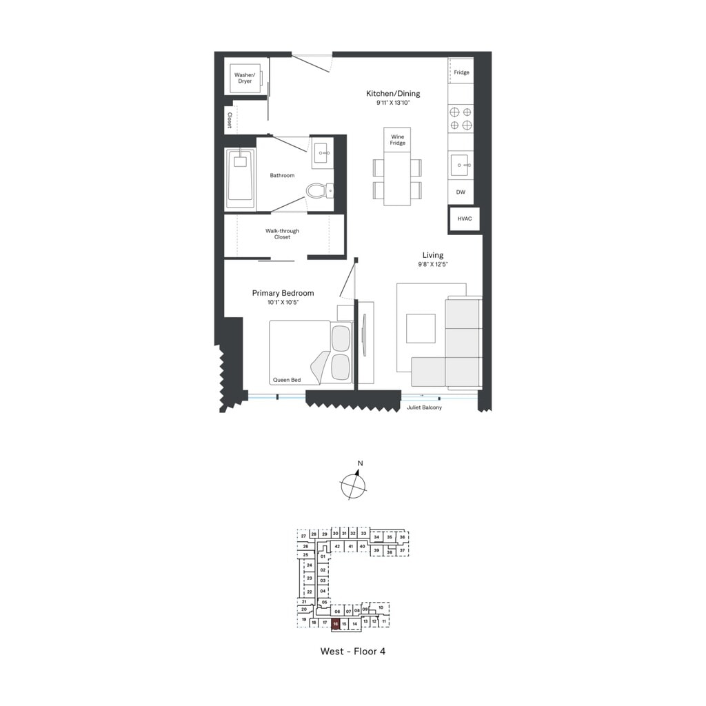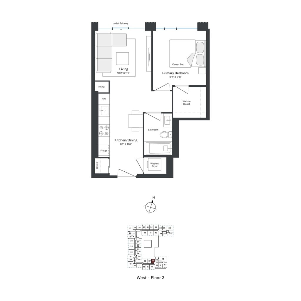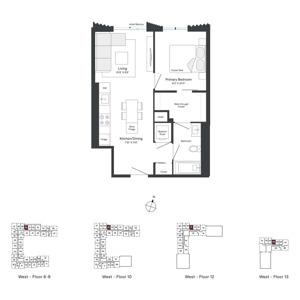 A06 - Floorplan 1 Apartment Unit: W0308Apartment Model: A06$2,4071 Bedroom, 1 Bath, 512 sq ftAvailable NowFloorplan A10
