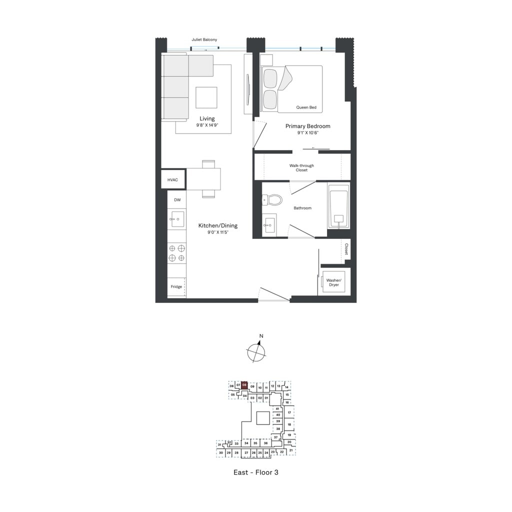 A09 - Floorplan 1 Apartment Unit: W0334Apartment Model: A09$2,4871 Bedroom, 1 Bath, 523 sq ftAvailable NowFloorplan A21