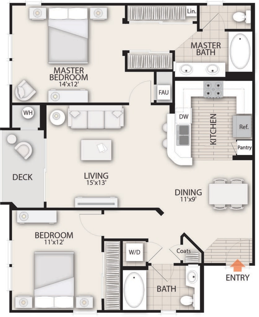 2 Beds, 2 Baths, 1055 sq ftAvailable NowCheapest 2 BedroomThis is the cheapest 2 Bedroom at this PropertyModel Gallery