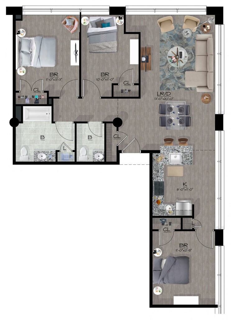 RR-3BR Flat - Floorplan 1 Apartment Unit: R-422Apartment Model: RR-3BR Flat$1,9013 Bedroom, 1.5 Bath, 1179 sq ftAvailable March 8, 2026