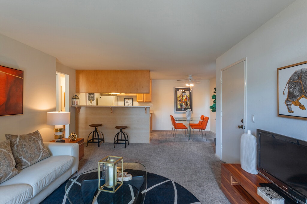 August 14, 2015Conveniently located next to two freeways, plenty of shops within walking distance and the mall is less than two miles away. The complex is 35 years old, just old enough to be rent controlled, anything newer is not. The maintenance is outstanding,even on weekends, and there is a night safety patrol. There are numerous large tress and small courtyards, it feels like a park. The complex has two solar heated pools with plenty of chairs and tables and two hot tubs. Two nicely equipped exercise rooms ...and numerous laundry rooms (a load of laundry is only $2.75 to wash and dry). There are carports to keep the sun off your vehicle. The walls are bit thin but our neighbors are nice. You could spent more for nicer interior at other apartments but you would miss the location and greenery here.Read MoreReview from Apartments.com