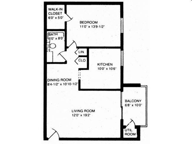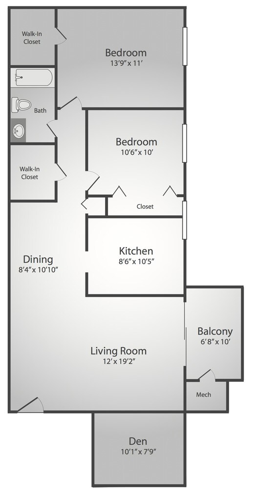 2 Bedroom, 1 Bath - Floorplan 1 2 Bedroom, 1 Bath, Den