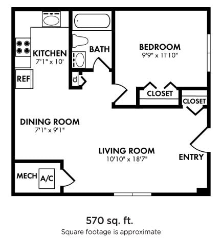 Availability Date Unit Sq Ft Call for Availability One Bedroom - 570 sqft 570 sq ft Model Amenities and Features