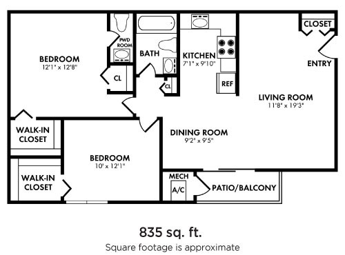 2 Beds, 1.5 Baths, 835 sq ftAvailable NowModel Gallery