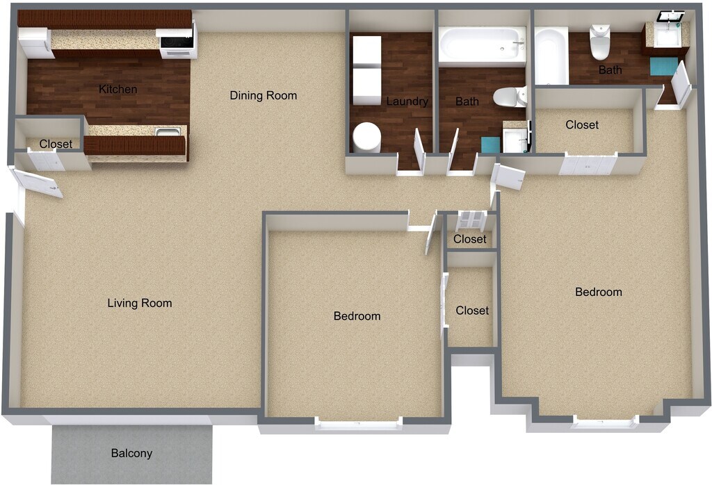 Apartment Model: 2 Bedroom (sm)From $1,1252 Bedroom, 2 Bath, 950 sq ftUnavailable![]()
