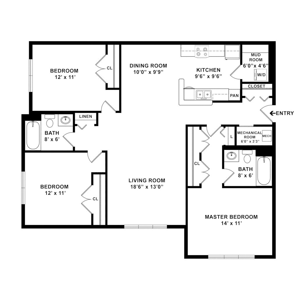 Two Bedroom Two Bathroom B Market - Floorplan 3 3 Bedrooms