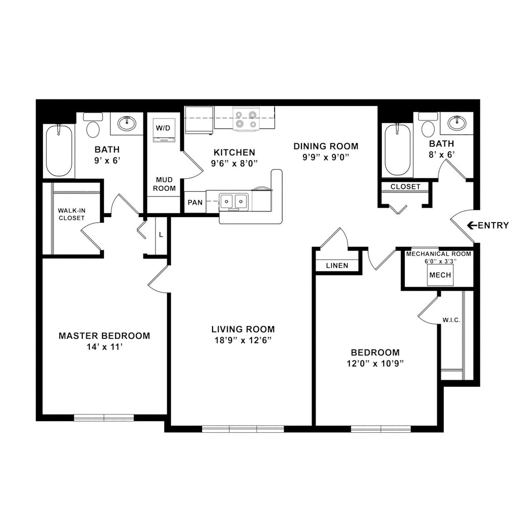 One Bedroom One Bathroom Market - Floorplan 3 2 Bedrooms