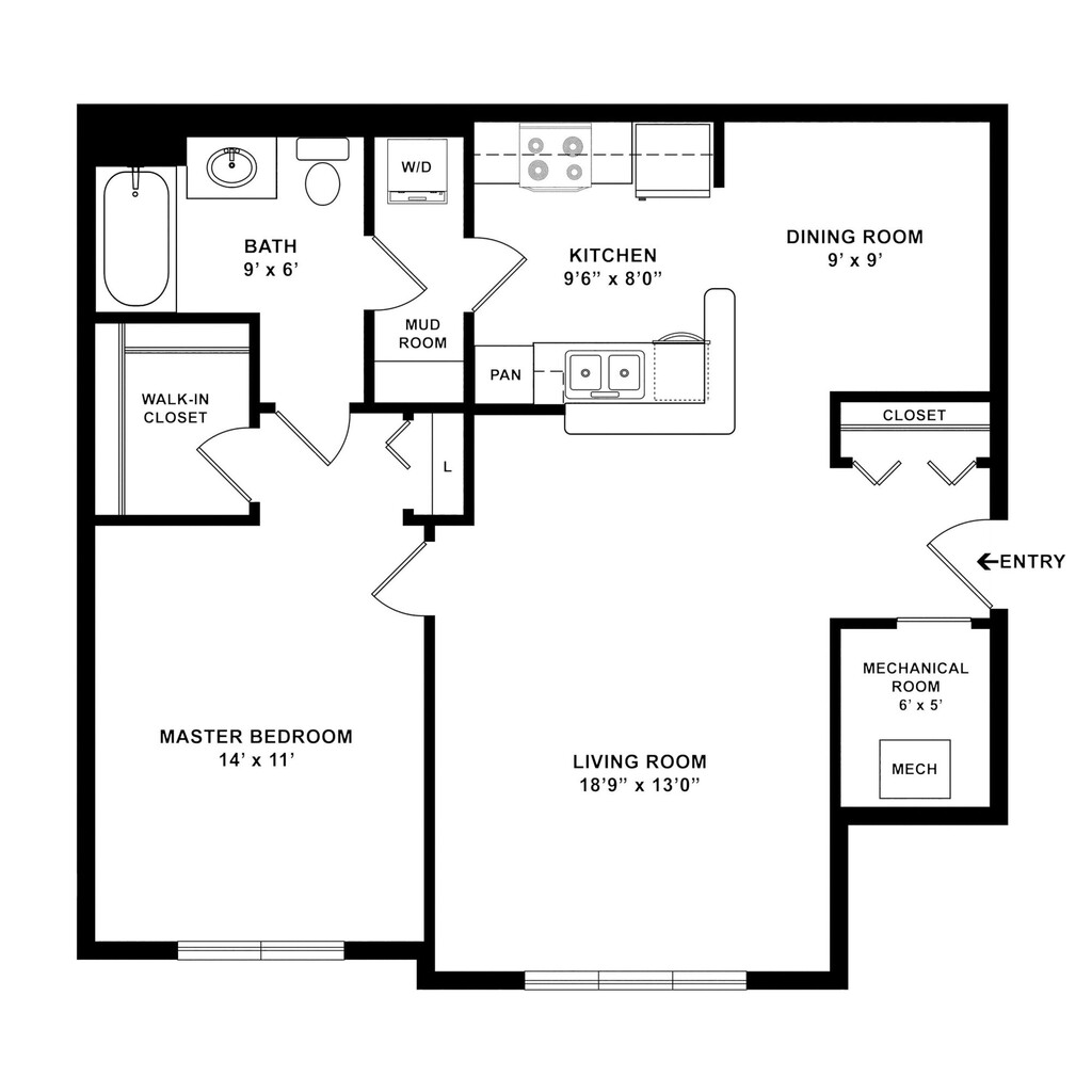 One Bedroom One Bathroom Market - Floorplan 1 ![]()