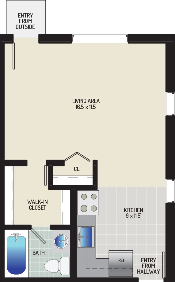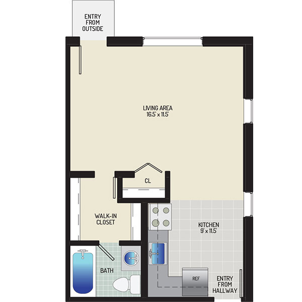 Studio, 1 Bath, 400 sq ftModel Gallery