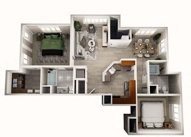1 Bedroom 1 Bath - Floorplan 2 Apartment Unit: 307Apartment Model: 1 Bedroom 1 Bath$1,8751 Bedroom, 1 Bath, 872 sq ftAvailable NowEfficiency