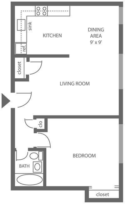 Studio | 1 Bath - Floorplan 1 1 Bedroom