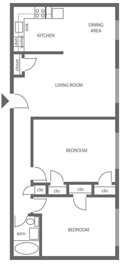 2 Bed | 1 Bath - Floorplan 1 2 BD Small