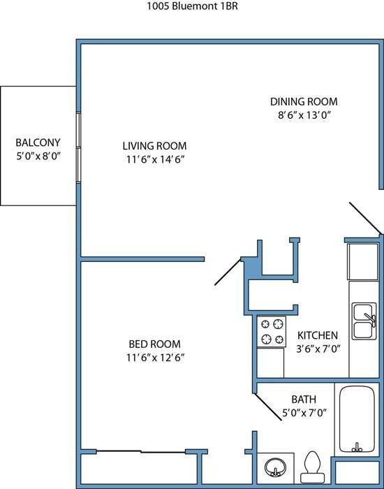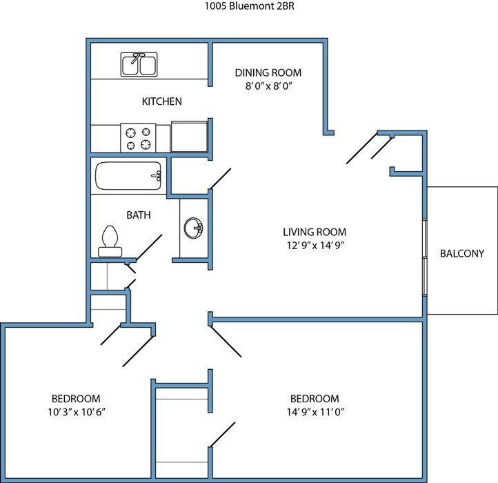 1 Bed 1 Bath - Floorplan 1 2 Bedrooms