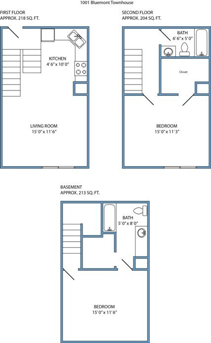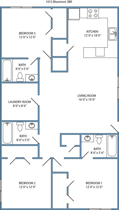 2 Bed 2 Bath Townhome - Floorplan 1 3 Bedrooms