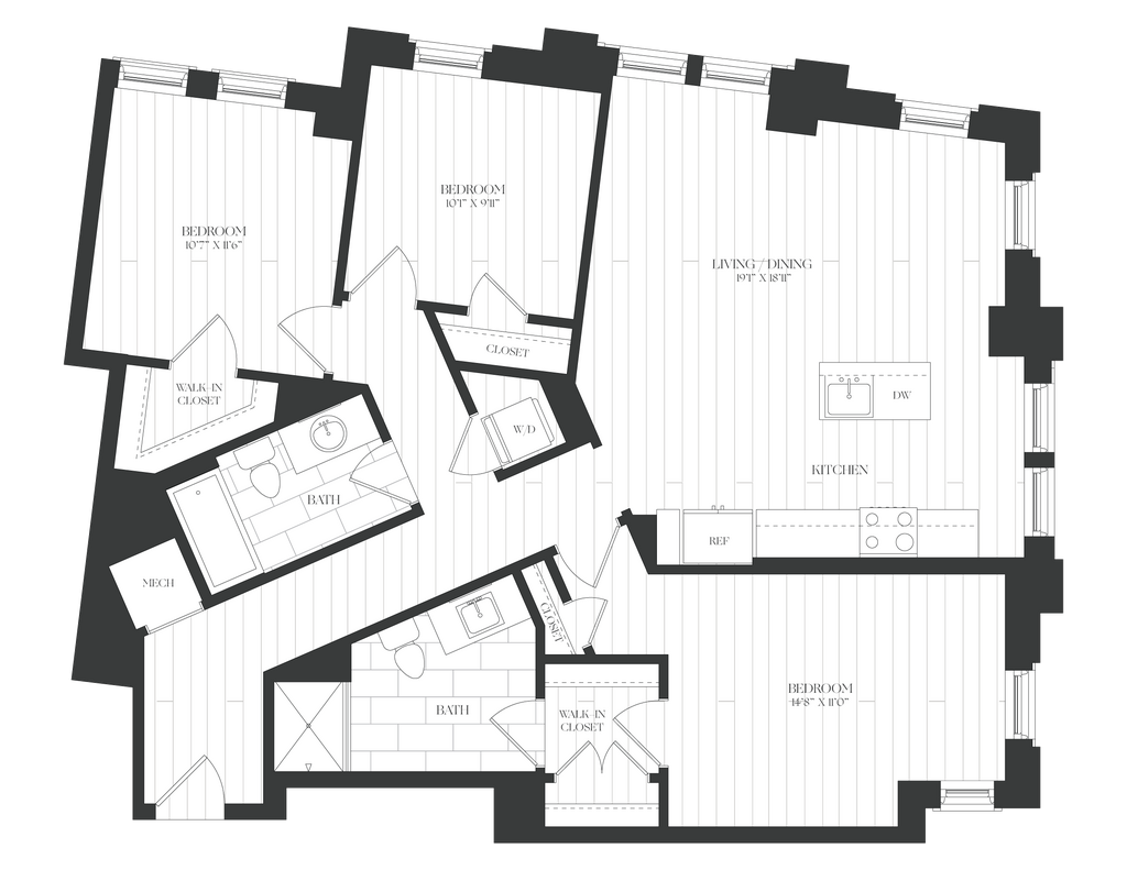 Apartment Model: 1 Bed/1 Bath-1B-3B-The ClaudeFrom $2,4751 Bedroom, 1 Bath, 671 sq ftAvailable Now![]()