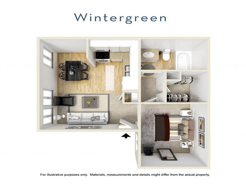 Apartment Model: WintergreenCall For Rates1 Bedroom, 1 Bath, 460 sq ftUnavailable![]()