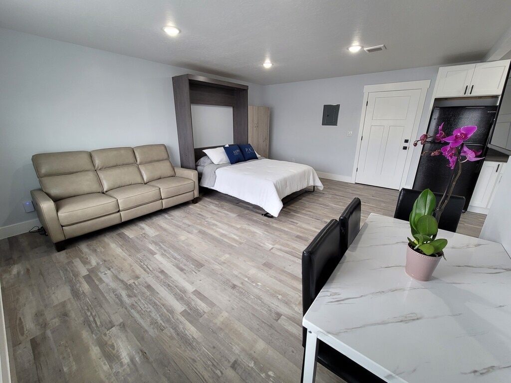 Welcome to the Chicane Apartments at the Riverwalk! High speed fiber internet included with rent! Large storage unit included with rent! Multiple washers and dryers in the basement that are FREE for tenants to use! The Chicane Apartments at the Riverwalk are a newly-renovated apartment community offering retro-modern studio and 1 bedroom apartment homes. Each unit is equipped with extensive luxury amenities. All studio apartments and 2 one bedroom apartments are fully furnished with a leather power reclining sofa with adjustable headrest; high-end mattress, box spring, and bed frame; large flat panel 4K HD television; and dining room table and chairs. The rest of the apartments come unfurnished to setup as you desire. Enjoy luxurious 9 foot ceilings, tons of natural light through brand new windows, rain shower heads, pull-down kitchen faucets, bedroom ceiling fans, built-in shelving in closets, lighting in closets, modern hardware, and many more high end finishes. Every detail was attended to including installing LED lights, low-E double-pane windows, energy efficient appliances, and energy efficient AC and heat with individual unit control - all contributing to reduced utilities costs. Insulation was installed in all interior walls for sound dampening throughout the building. There is a laundry facility on site with commercial washers and dryers that is available to tenants at no charge. Each unit also comes with a 5 x 6 foot storage unit on site at no additional charge. High speed fiber internet is available in all units and is included with your rent. There is a 9-camera security system with 24-hour monitoring installed on the property. There is a dedicated parking spot for each unit included with rent, and the option to secure additional parking spots. Our floorplans consist of studio and one bedroom apartment homes in various layouts, providing options to ensure the perfect fit for you! The Chicane Apartments at the Riverwalk are conveniently located within walking distance to downtown Idaho Falls and a block away from the beautiful Riverwalk Park. It is only blocks away from several great restaurants and bars as well as the city recreation center. Nearby attractions include the Museum of Idaho, East Idaho Aquarium, Art Museum of Eastern Idaho, Idaho Falls Farmer’s Market, and the Idaho Falls Public Library. At the Chicane, you are sure to enjoy the best that luxury downtown living has to offer.