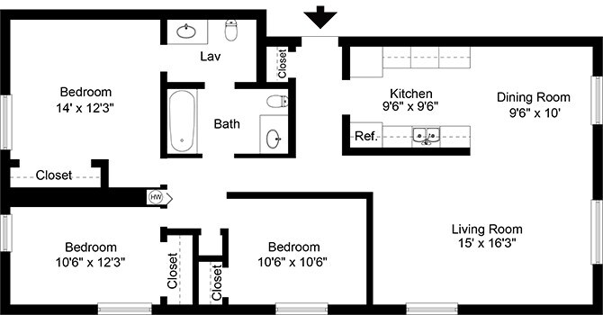 Apartment Model: 3 Bedroom$1,6453 Bedroom, 1.5 Bath, 1170 sq ftUnavailable![]()