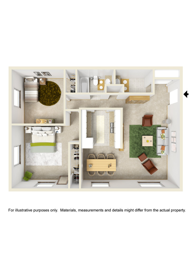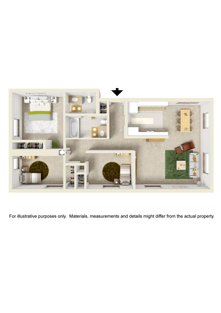 Apartment Model: 2 BedroomFrom $1,2252 Bedroom, 1.5 Bath, 912 sq ftAvailable December 7, 2025![]()