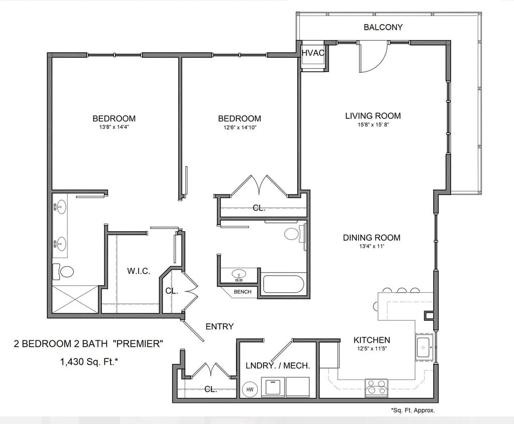 2 Bedroom 2 Bath Premier - Floorplan 1