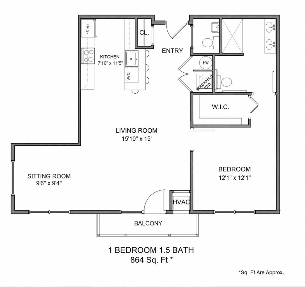 1 Bed 1.5 Bath Incl Internet - Floorplan 1 1 Br 1 Bath ADA Incl Internet