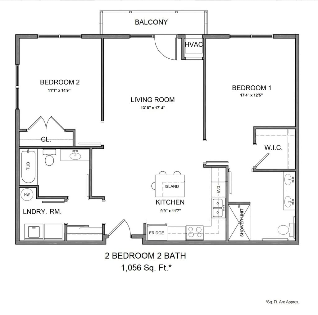 2 Bedroom 2 Bath - Floorplan 9 2 Bedroom 2 Bath Premier