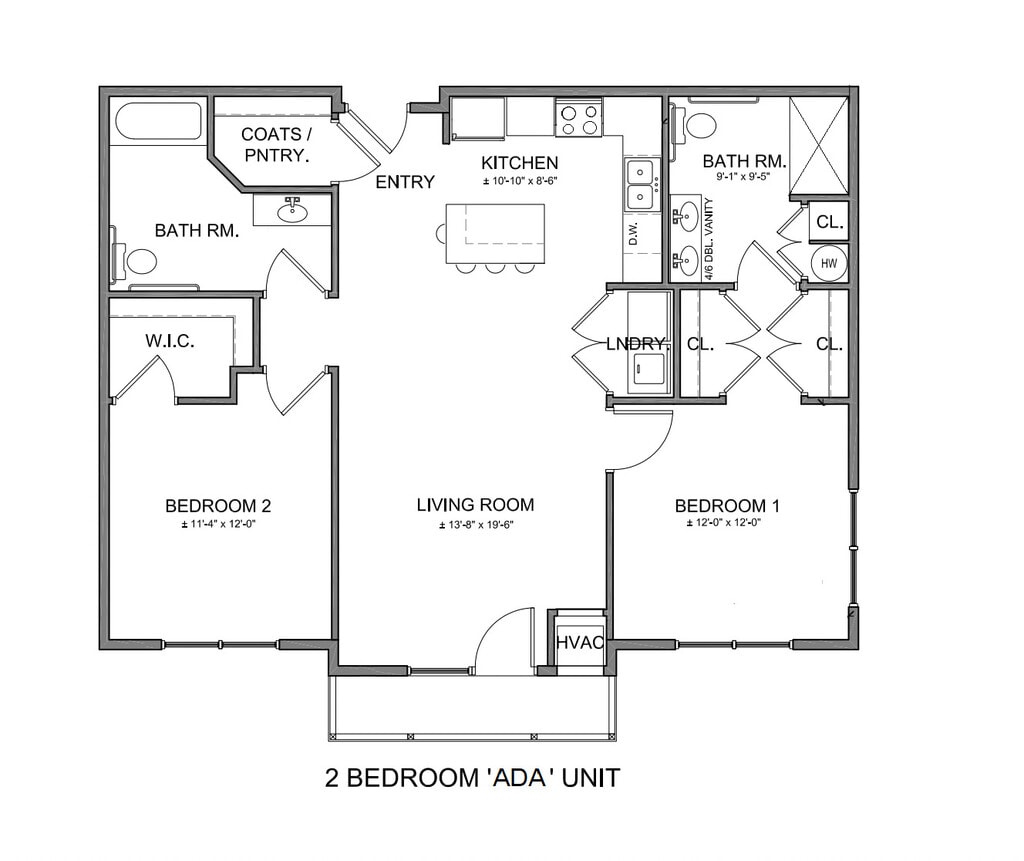 2 Br 2 Bath ADA Incl Internet - Floorplan 1 2 Bed 2 Bath Incl Internet
