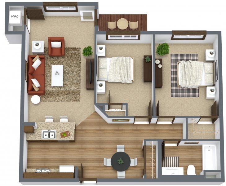 Apartment Model: 2 Bedroom/2Bath Apartment$1,6452 Bedroom, 2 Bath, 974 sq ftAvailable December 1, 2025![]() - 2 Bedroom/2Bath Apartment - Floorplan 1