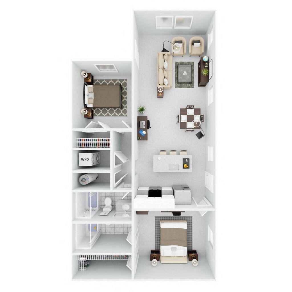 2 Beds, 2 Baths, 1125 sq ftAvailable NowLargest 2 BedroomThis is the largest 2 Bedroom at this PropertyModel Gallery