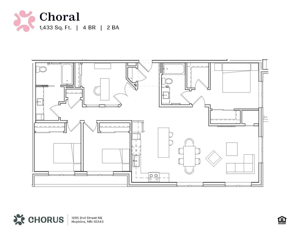 4 Beds, 2 Baths, 1433 sq ftModel Gallery