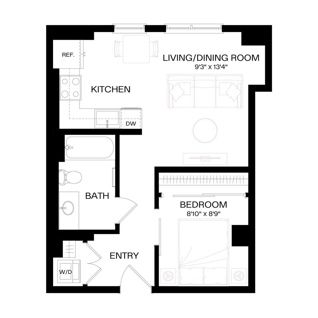 Apartment Model: U1 MFTEFrom $1,7971 Bedroom, 1 Bath, 475-592 sq ftAvailable NowFloor plans are artist's rendering. All dimensions are approximate. Actual product and specifications may vary in dimension or detail. Not all features are available in every rental home. Prices and availability are subject to change. Base rent is based on monthly frequency. Additional fees may apply, such as but not limited to package delivery, trash, water, amenities, etc. Deposits vary. Please see a representative for details.