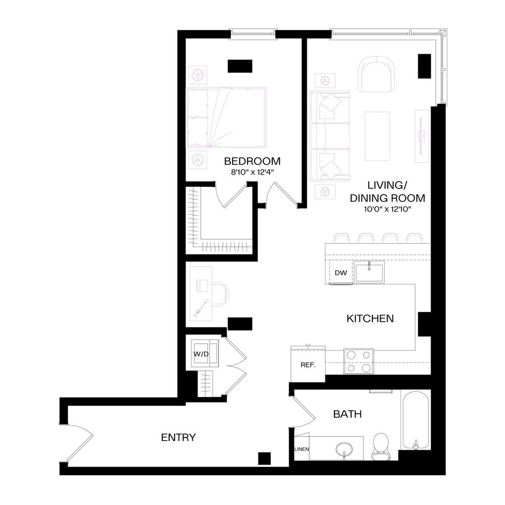 Apartment Model: U2 MFTE$1,7211 Bedroom, 1 Bath, 493-556 sq ftAvailable NowFloor plans are artist's rendering. All dimensions are approximate. Actual product and specifications may vary in dimension or detail. Not all features are available in every rental home. Prices and availability are subject to change. Base rent is based on monthly frequency. Additional fees may apply, such as but not limited to package delivery, trash, water, amenities, etc. Deposits vary. Please see a representative for details.