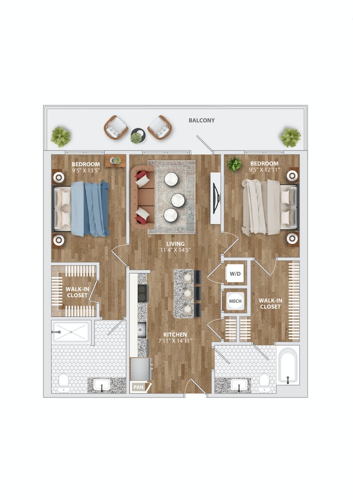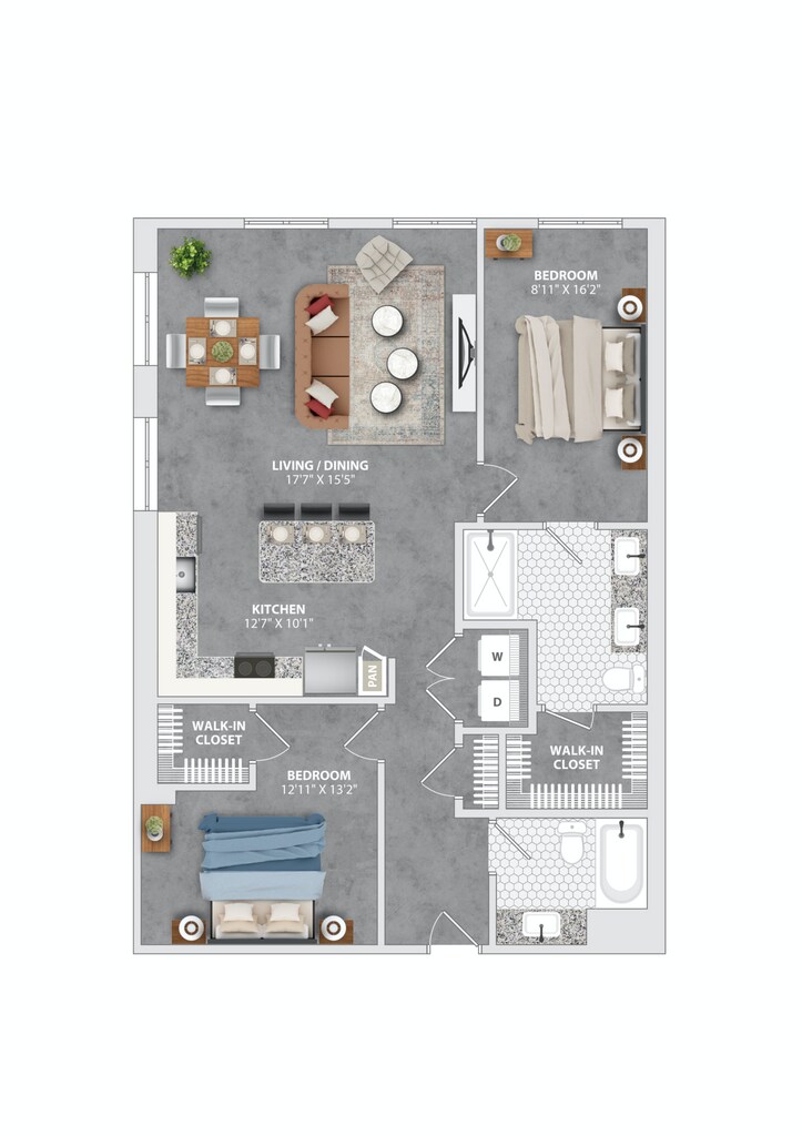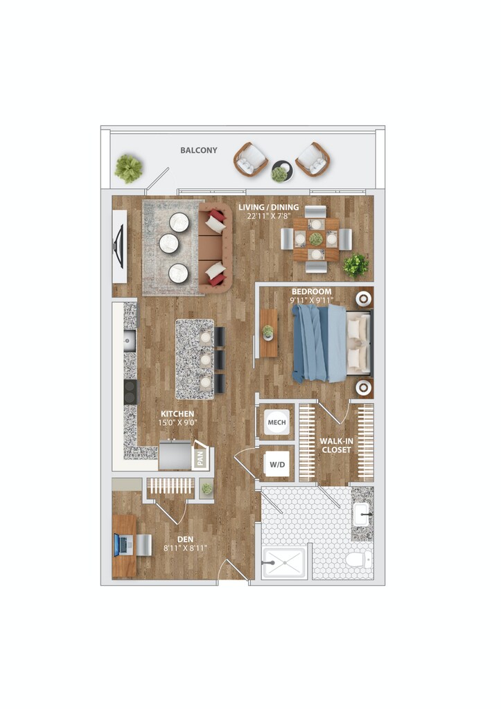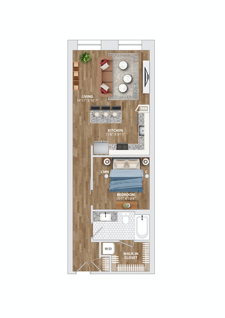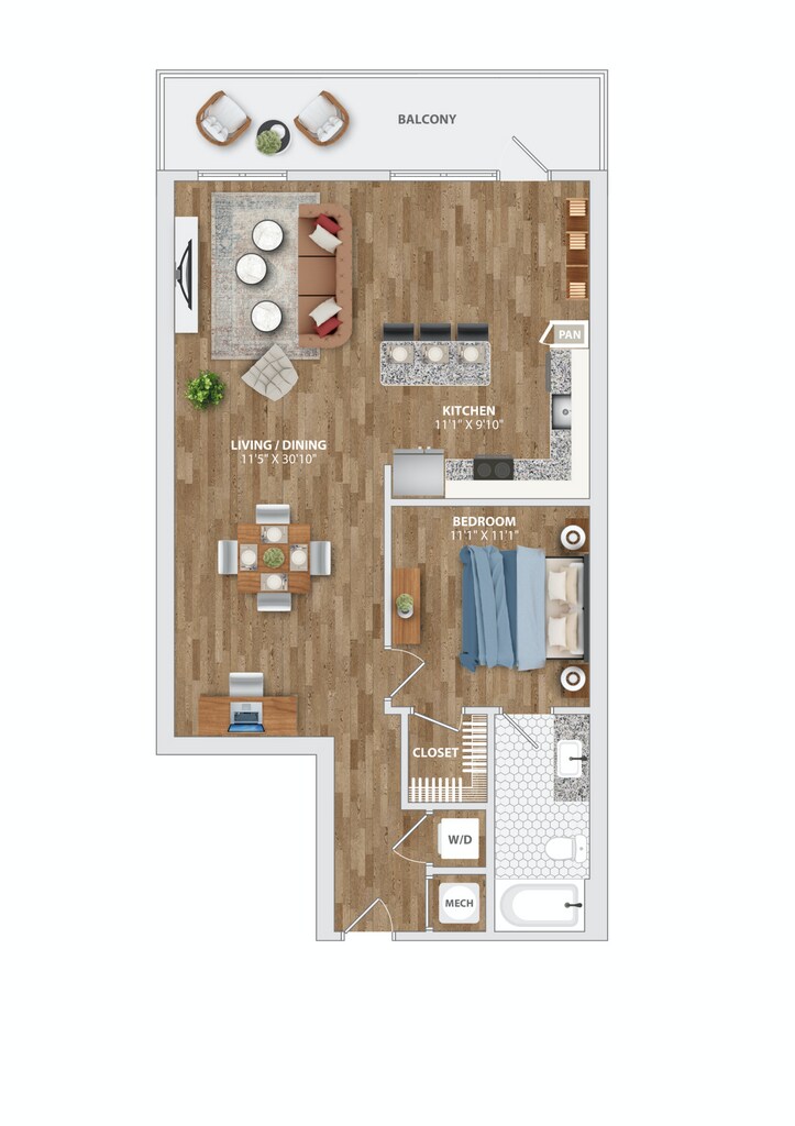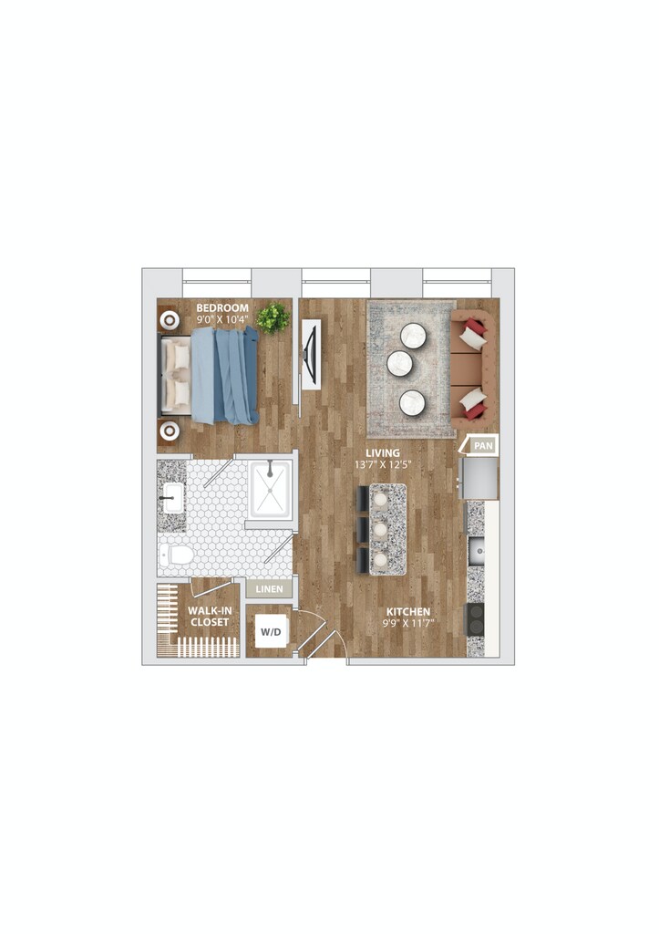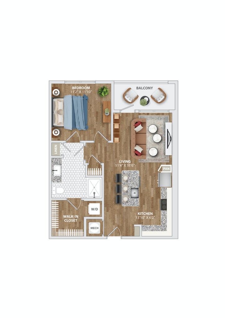 Apartment Model: MILL A13$3,7131 Bedroom, 1 Bath, 1048 sq ftAvailable November 7, 2025![]()