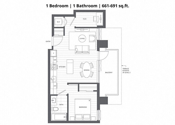 1 Bed, 1 Bath, 661-691 sq ftAvailability Details