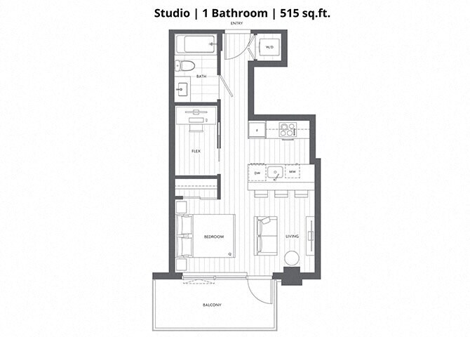 Studio, 1 Bath, 430 sq ftAvailable NowModel Gallery