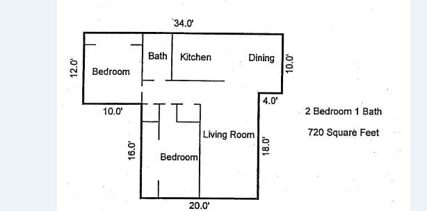 Apartment Model: 2x12 Bedroom, 1 Bath, 720 sq ftUnavailable2x1 - Floorplan 1 3 Bedrooms