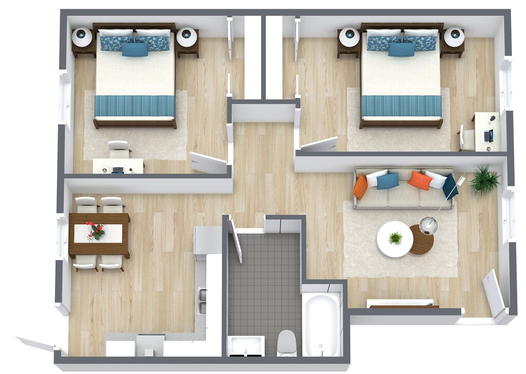 2 Beds, 1 Bath, 860 sq ftModel Gallery