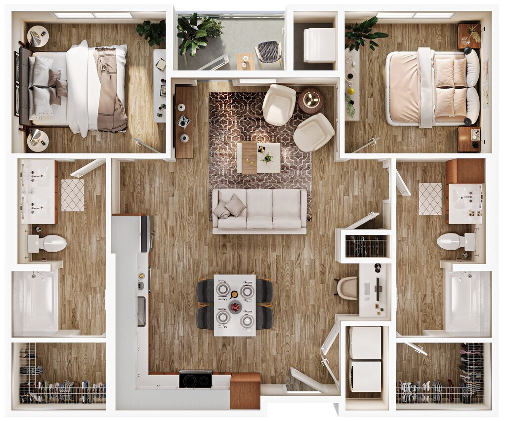 Apartment Model: 2x2c$2,1962 Bedroom, 2 Bath, 1107 sq ftAvailable December 4, 2025![]()