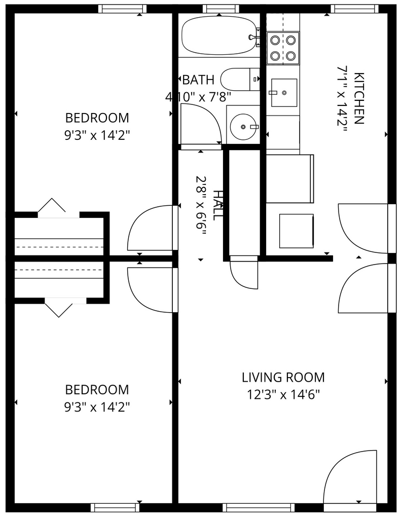 Apartment Model: 2 x 1From $1,3252 Bedroom, 1 Bath, 680 sq ftAvailable Now![]()