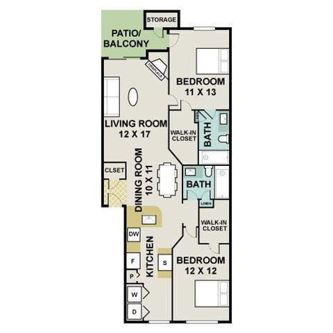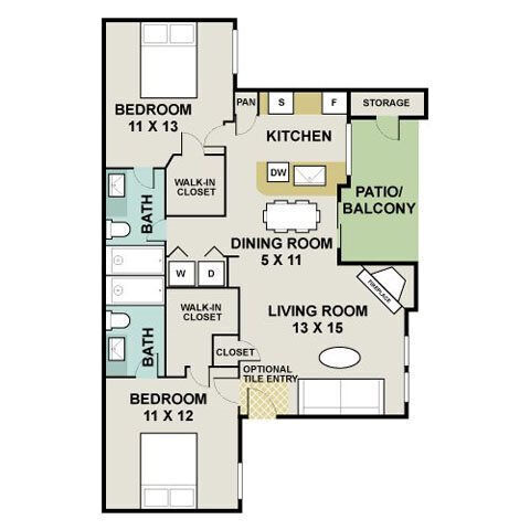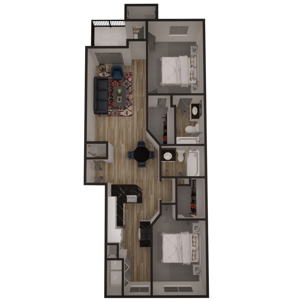 Apartment Model: 2D2 Bedroom, 2 Bath, 1042 sq ftUnavailable![]()