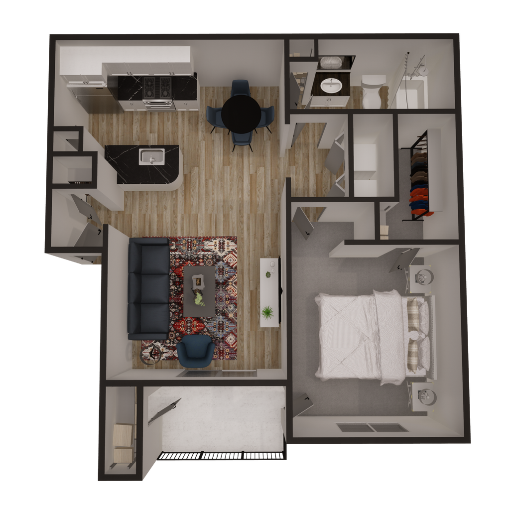 1 Bed, 1 Bath, 579 sq ftModel Gallery