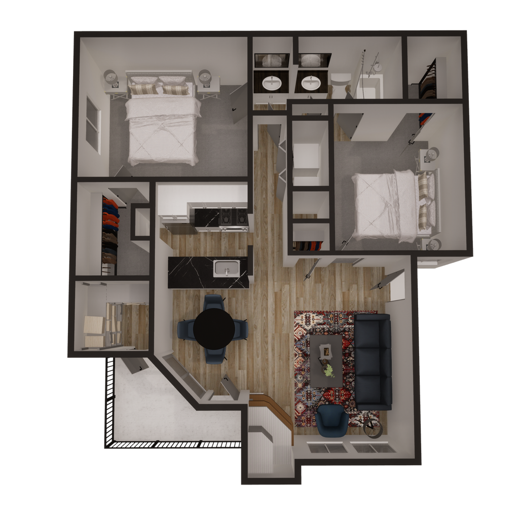 2 Beds, 2 Baths, 957 sq ftModel Gallery