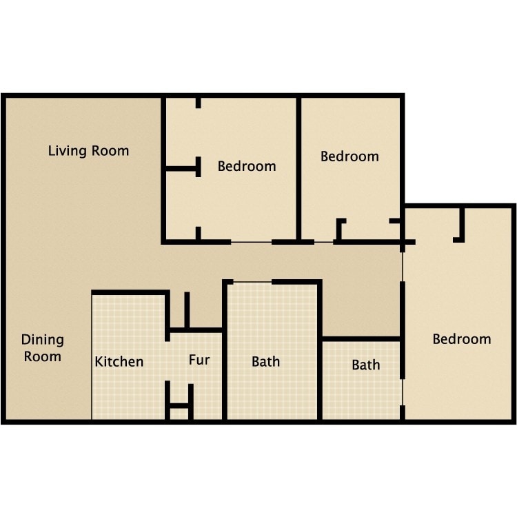 Apartment Model: 3 BR 1.5 B3 Bedroom, 1.5 Bath, 923 sq ftUnavailable![]()