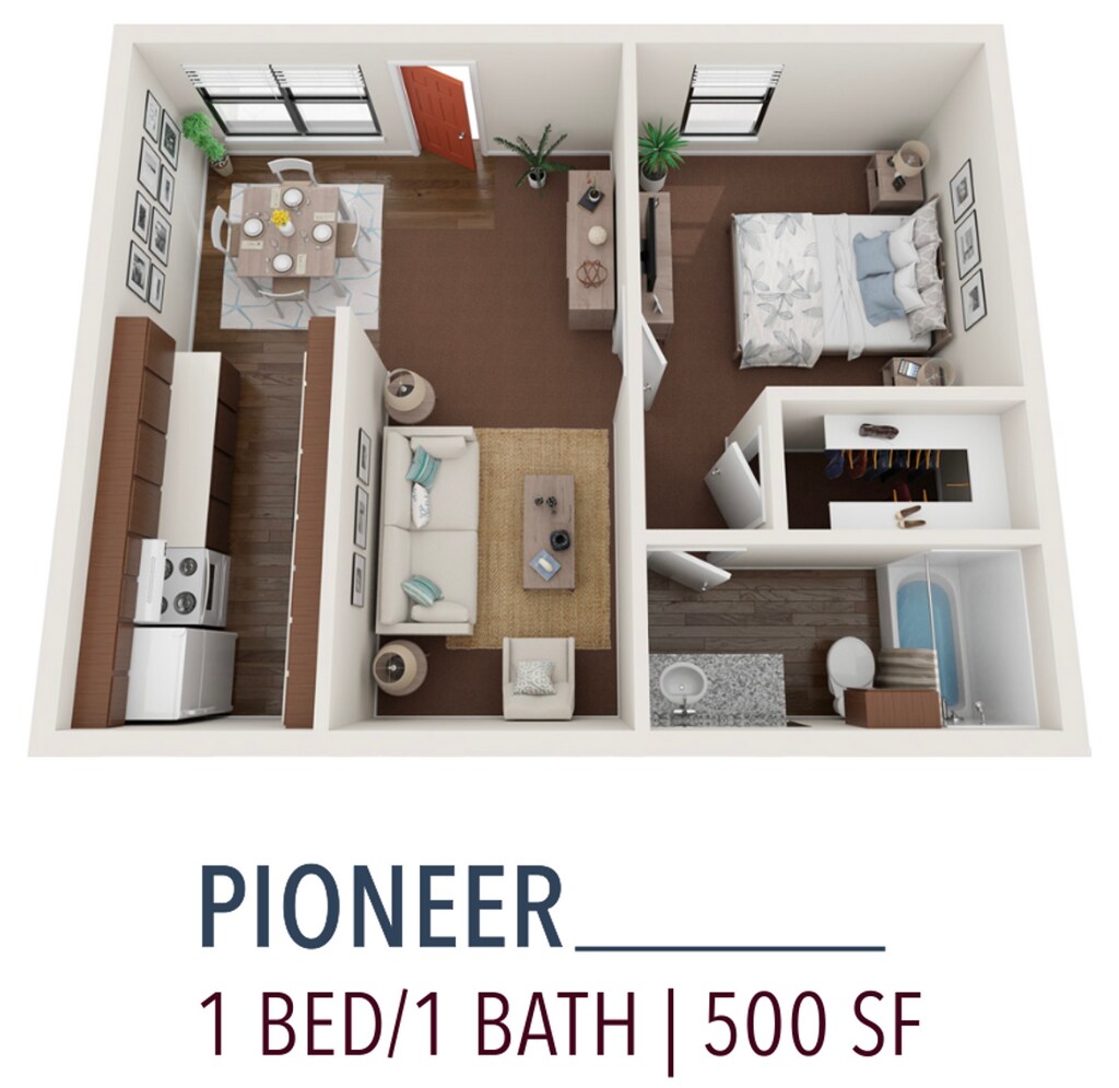 1 Bed, 1 Bath, 500 sq ftAvailable NowModel Gallery